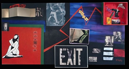 Combine Painting - electric sign, acrylic mirror, steel, wood box, collage on canvas